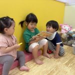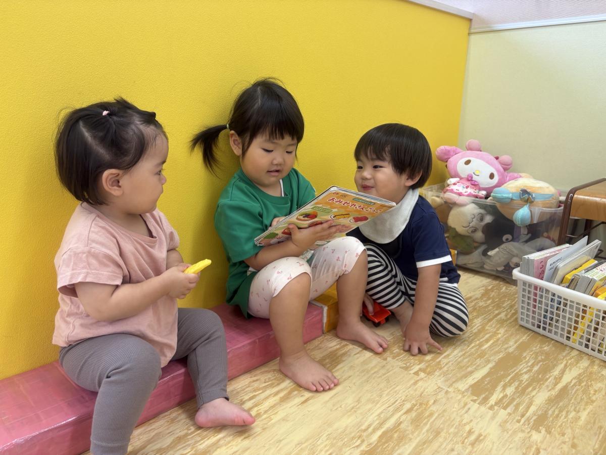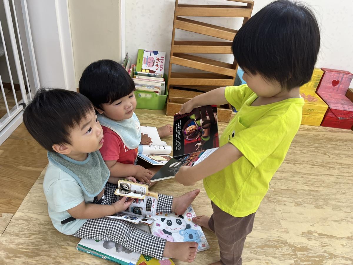 気に入った絵本は先生に何度も「よんで~」とリクエストしたり、お友だちと一緒に読んだり…