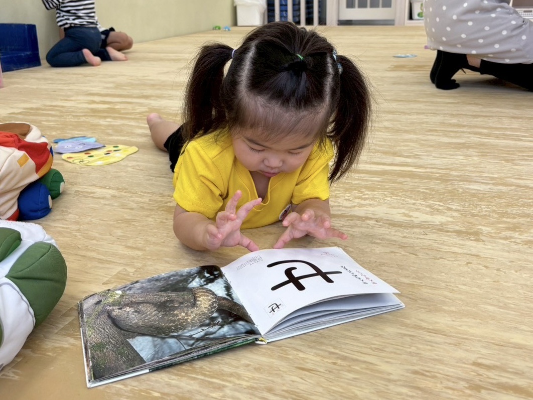絵本を介して「言葉」を知り、そして発してみるといった語彙の習得に繋がっています。