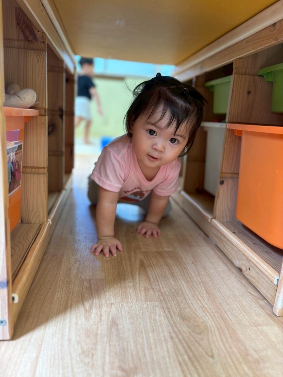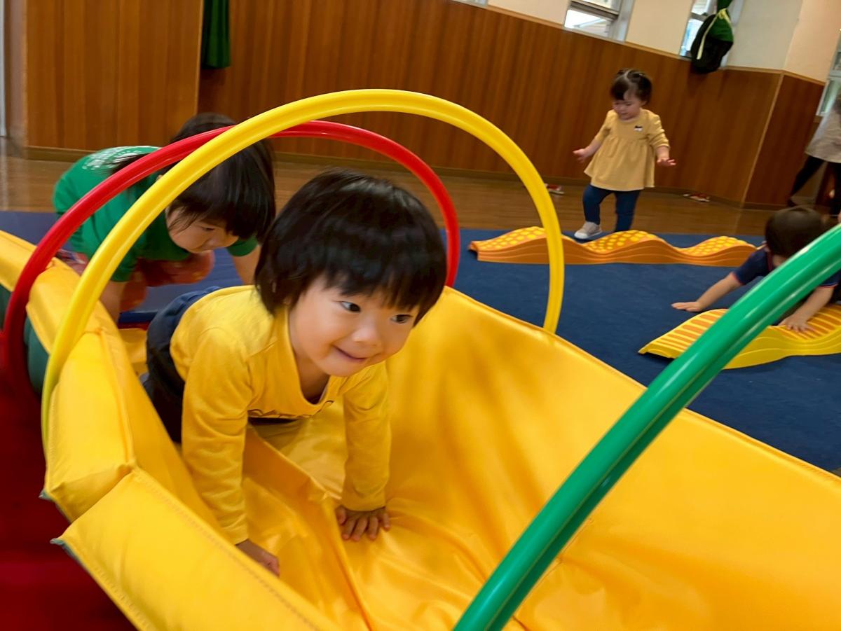跳ぶ、登る、くぐる、転がる、大きく体を動かして遊ぶことを楽しんでいます。