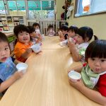 みんなで美味しく食べながら、にこにこ笑い合う子どもたちが可愛らしいです。