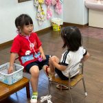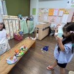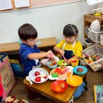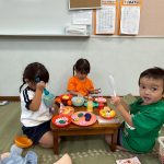 年少組は、一人で集中して遊ぶ事を楽しみつつも、少しずつ友達と関わることを楽しむ様子が見られてきました。