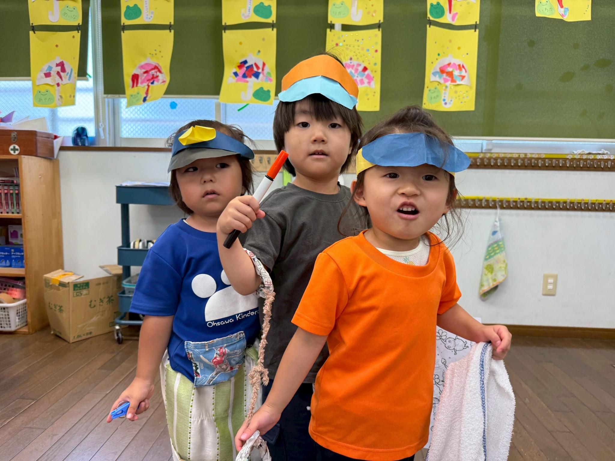 その他にも先生になりきって絵本の読み聞かせをしたり、お面を頭に身に着けてねこちゃんや警察官等毎日様々な物になりきって遊ぶ子ども達です☆