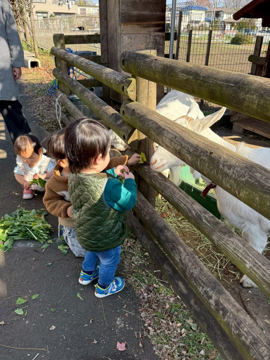 大根の葉をヤギのももちゃんとれもんちゃんにもどうぞしてくれました♪