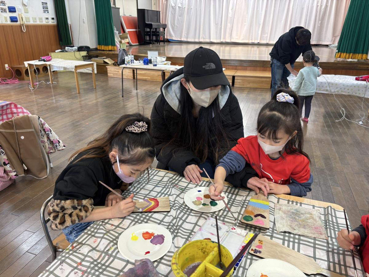 羽子板作りを行っていく中で、絵の具を混ぜ合わせたり、重ねて塗ったりすると、様々な色が出来上がるという新発見もあったようです![]()