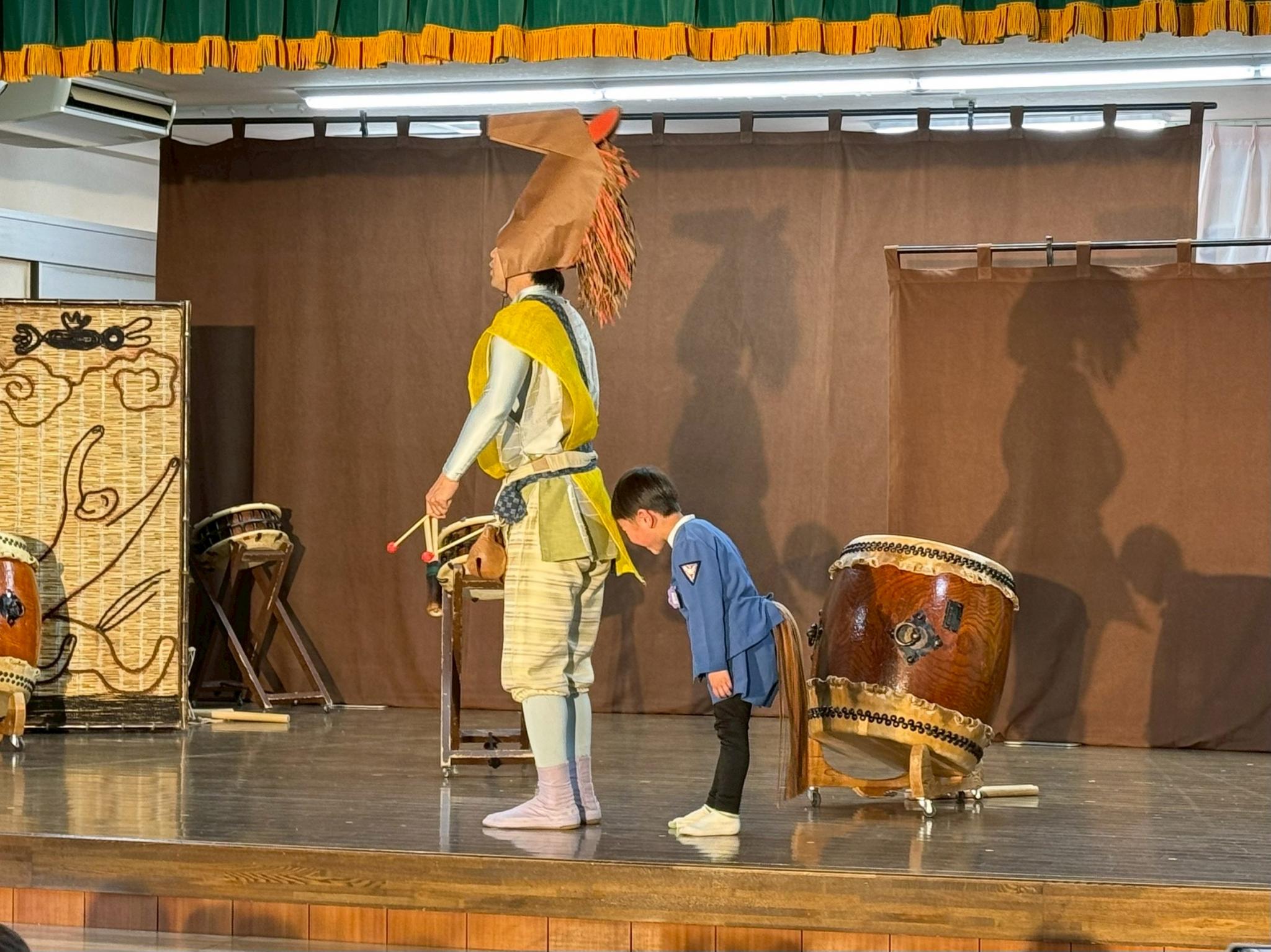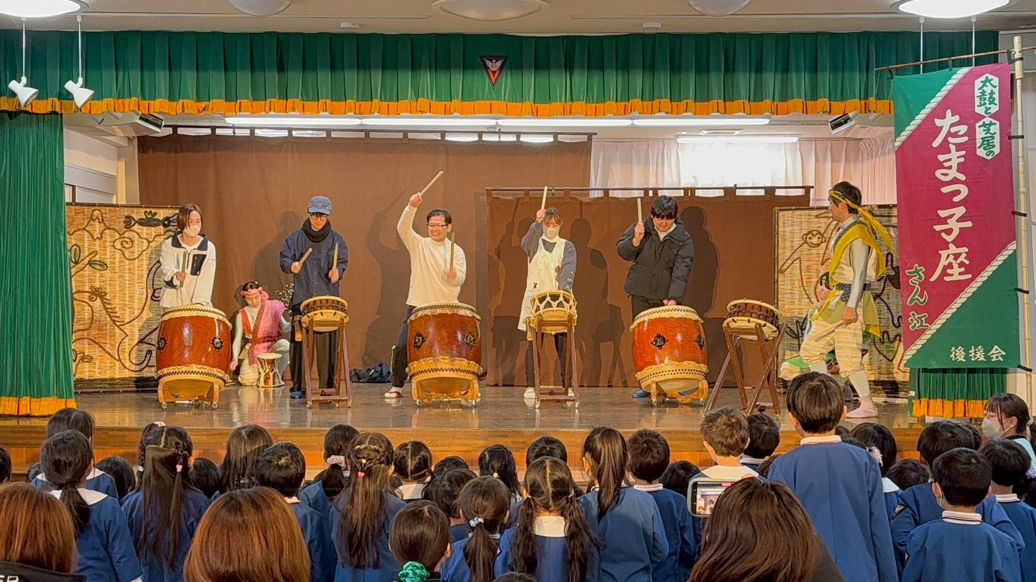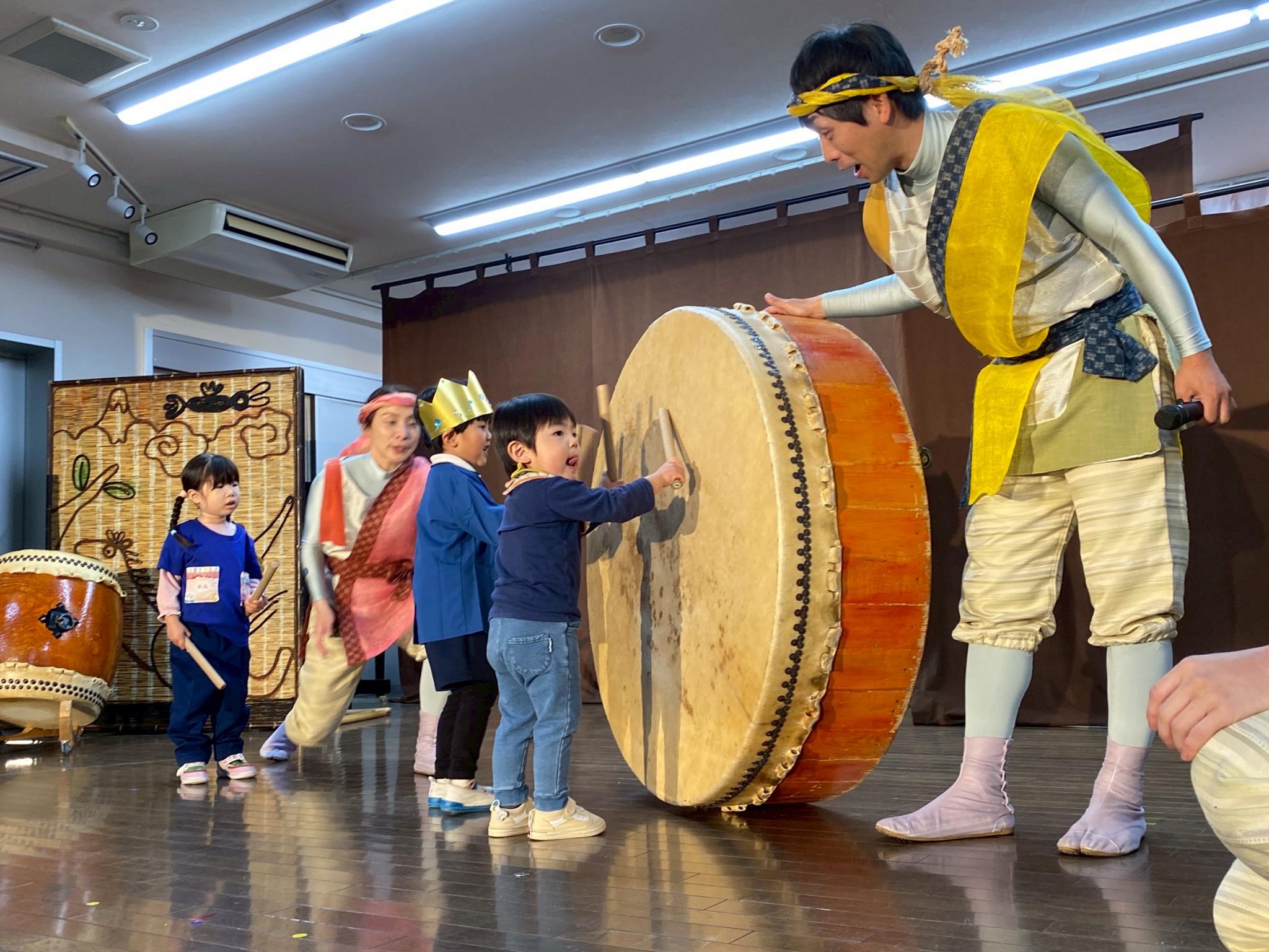 お楽しみでは、子ども向けの和太鼓を行う太鼓と芝居の「たまっ子座」が来てくれ