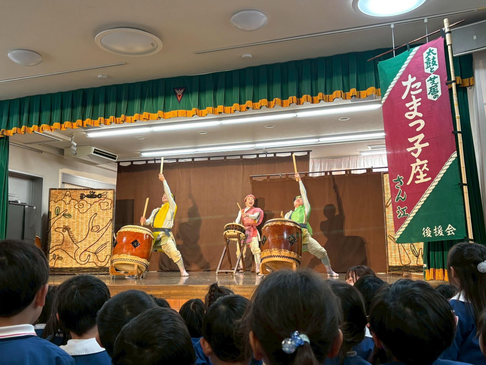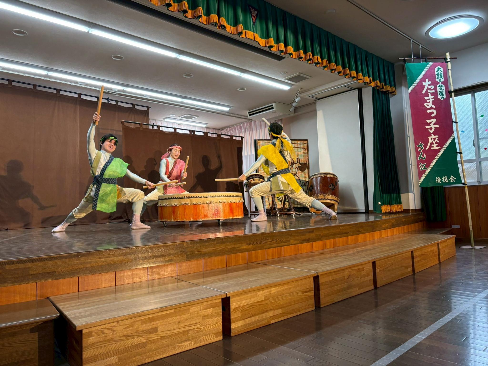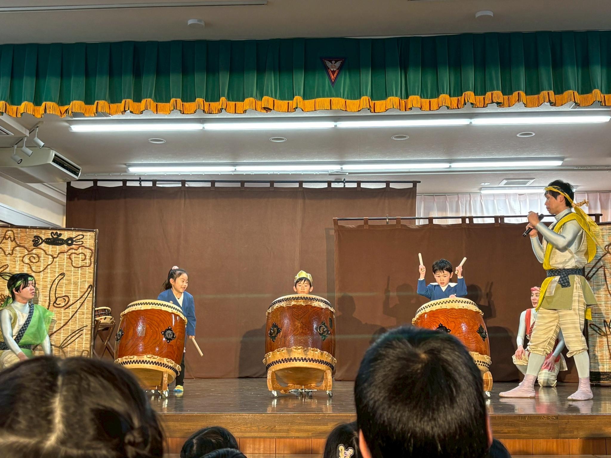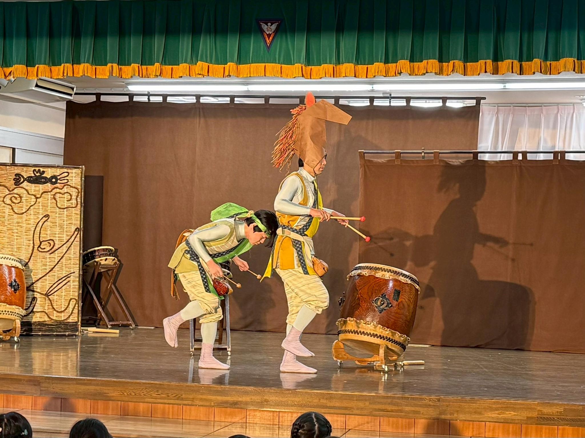 お楽しみでは、子ども向けの和太鼓を行う太鼓と芝居の「たまっ子座」が来てくれ