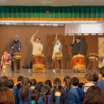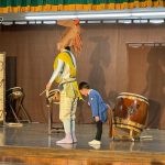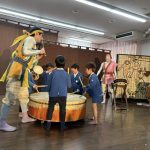 先生達や子どもたちが太鼓を叩く時間を作ってくれ、大きな太鼓を力強く叩くことを楽しんでいました。