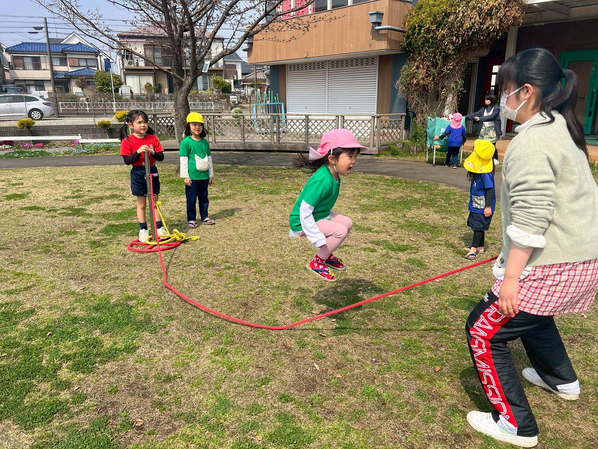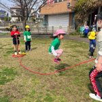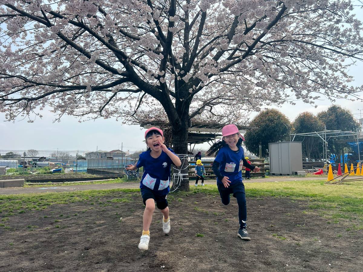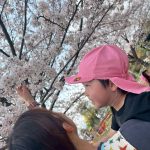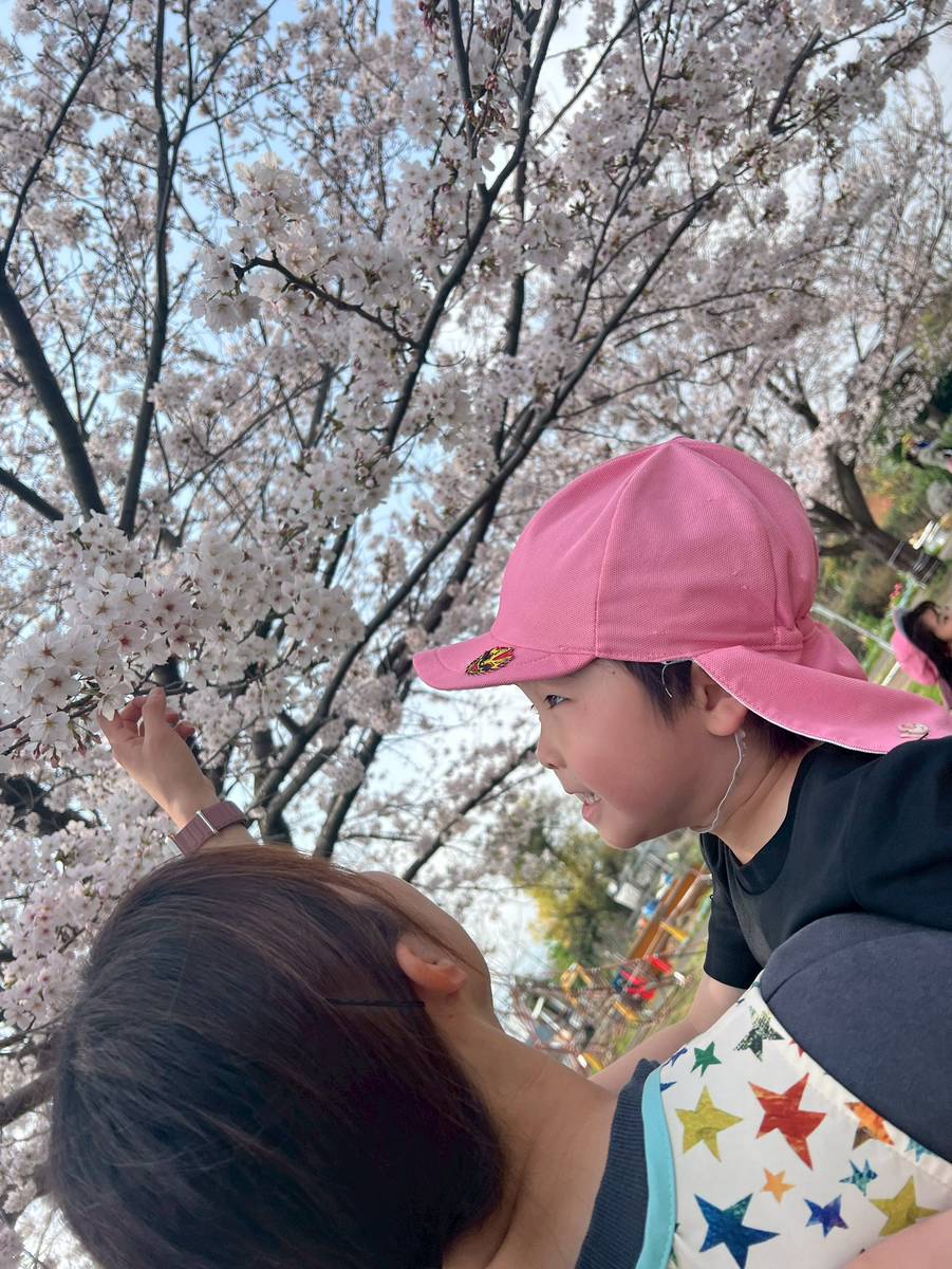 きれいな桜を見たり、花びらを集めるお友だち🌸