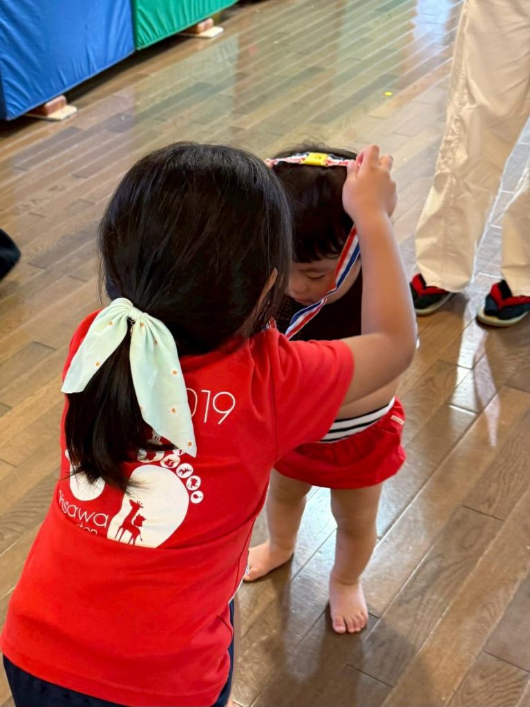 幼稚園のホールで、元気のもり☆Tシャツ作りを行いました。 講…
