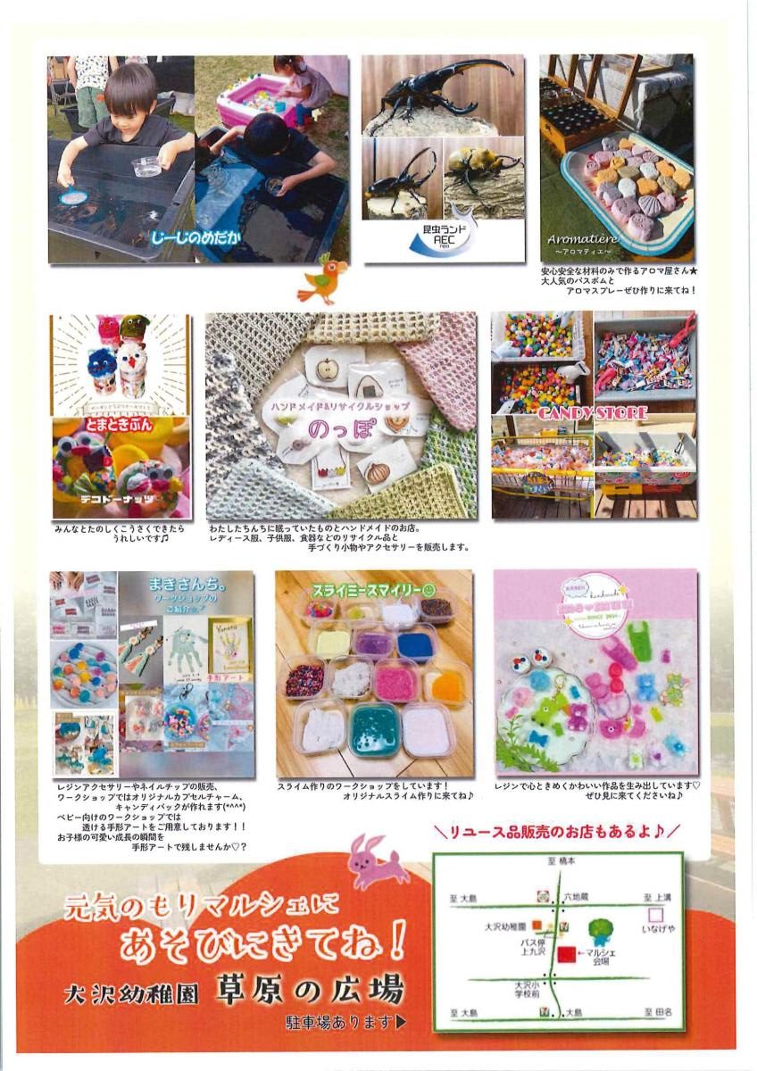 本日、草原の広場(大沢幼稚園の第2園庭)で、マルシェ開催中!